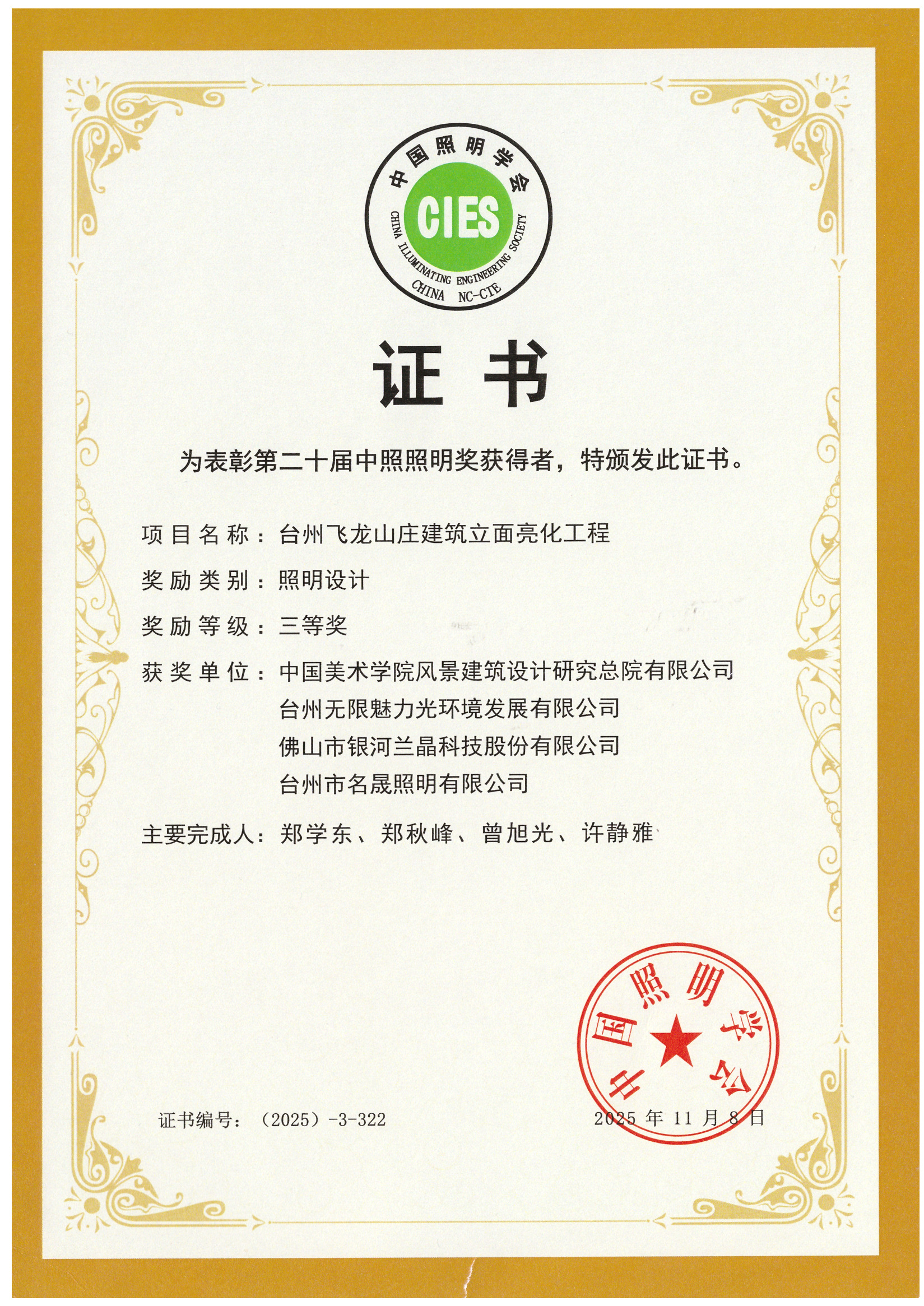 台州飞龙山庄获第二十届中照照明工程设计三等奖